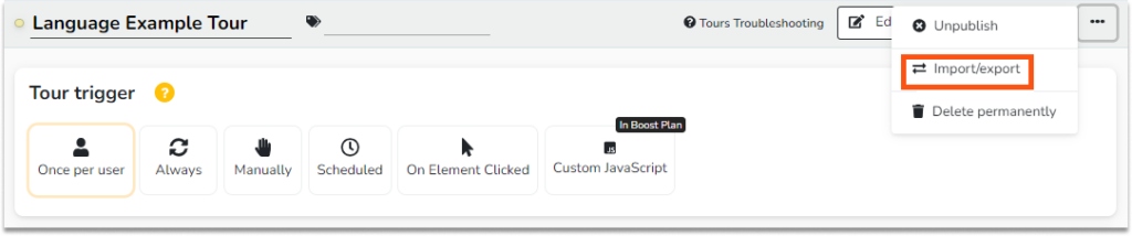💡 We also have the ability to export tour and hint content to excel files, which allows you to easily download the content in one language, translate it to another and then upload it back to Product Fruits.
